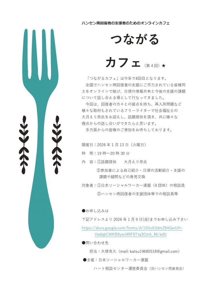 今回は、回復者の方々との接点を持ち、再入所問題など様々な取材もされているフリーライターで社会福祉士の大月えり奈氏をお迎えし、話題提供を頂き、共に様々な視点からの話し合いができたらと思います。